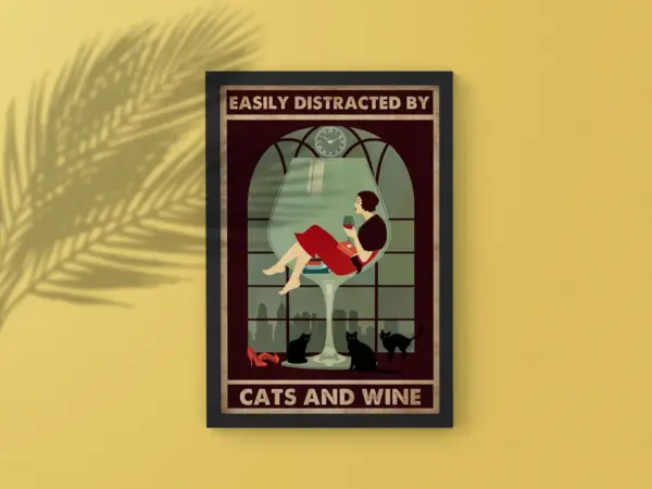 Easily Distracted By Cats And Wine Poster Black Cat Print Cat Lover Gift Wine Lover Gift Home Decor Wall Decor Cat Artwork Wall Art