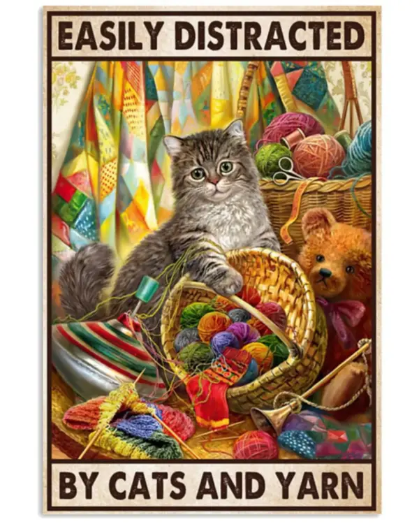 Easily Distracted By Cats And Yarn Vertical Poster Funny Cat Baking Art Cat Lover Gift
