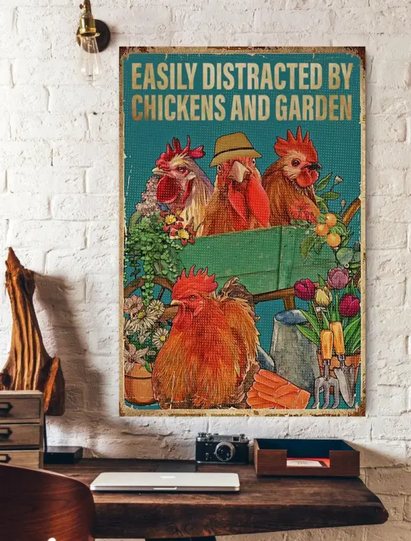 Easily Distracted By Chickens And Garden Vertical Print Poster