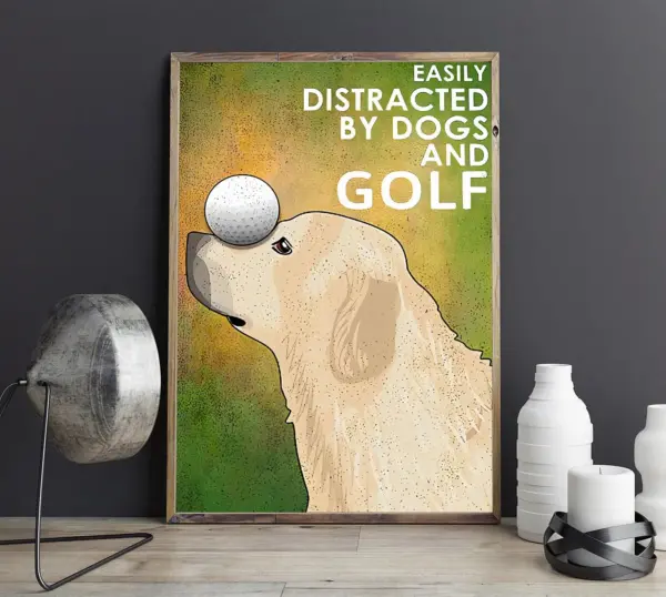 Easily Distracted By Dog And Golf Poster Dog And Golf Lover Poster Love Pet Poster Playing Golf Poster