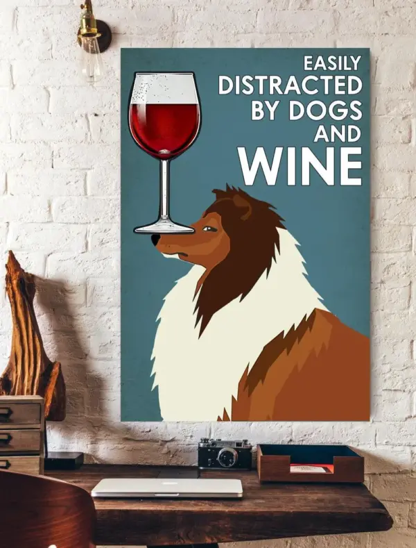 Easily Distracted By Dogs And Wine Vertical Print Poster