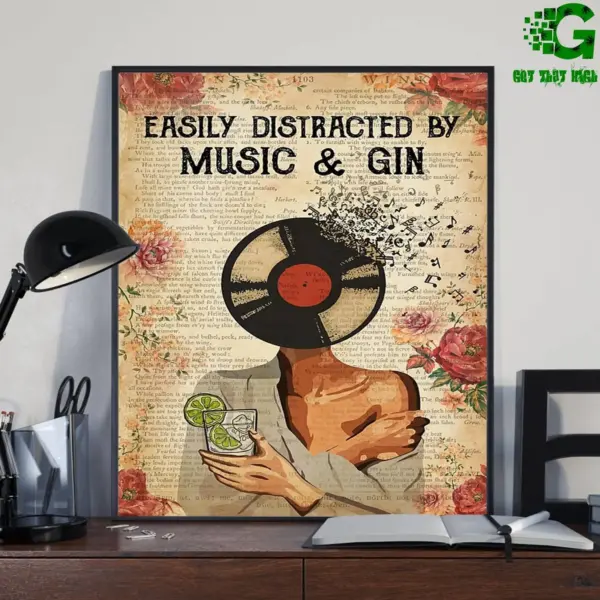 Easily Distracted By Music And Gin Poster Gin Lovers Wall Art Living Home Decor Wall Decor Best Gift Ever