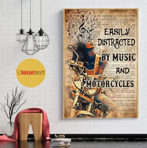 Easily Distracted By Music And Motorcycles Bike Girl Poster