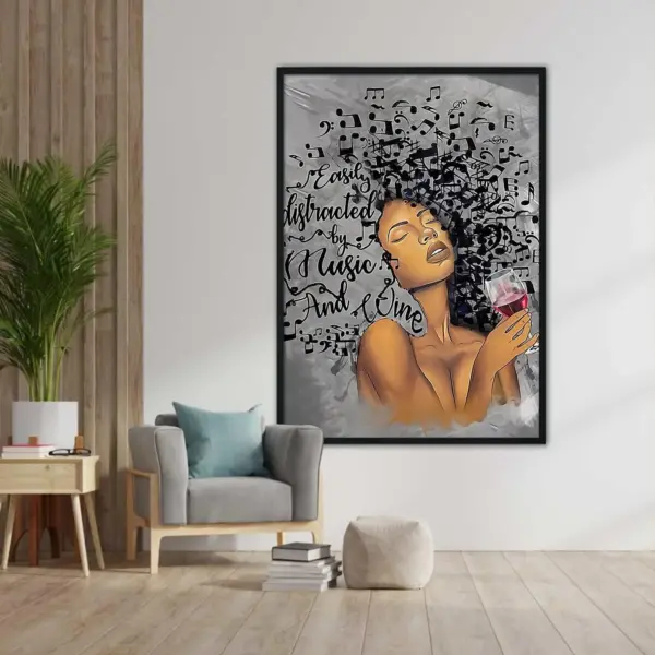 Easily Distracted By Music And Wine African American Girl Poster Canvas Lose Your Mind Find Your Soul Self Love Prints Boho Home Decor