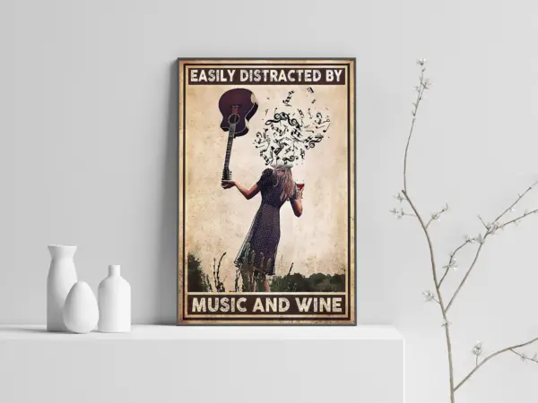 Easily Distracted By Music And Wine Poster Music Print Music Lover Poster Music Gift Idea Vintage Poster Signs For Home