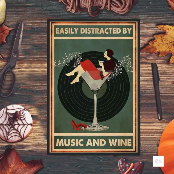 Easily Distracted By Music And Wine Poster Music Print Wine Lover Poster Printable Wall Art Black Art Vinyl Poster Signs For Home