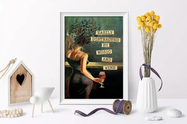 Easily Distracted By Music Wine Poster Music Poster Music Print Music Wall Decor Wine Poster Wine Wall Decor Wine Lover Home Decor