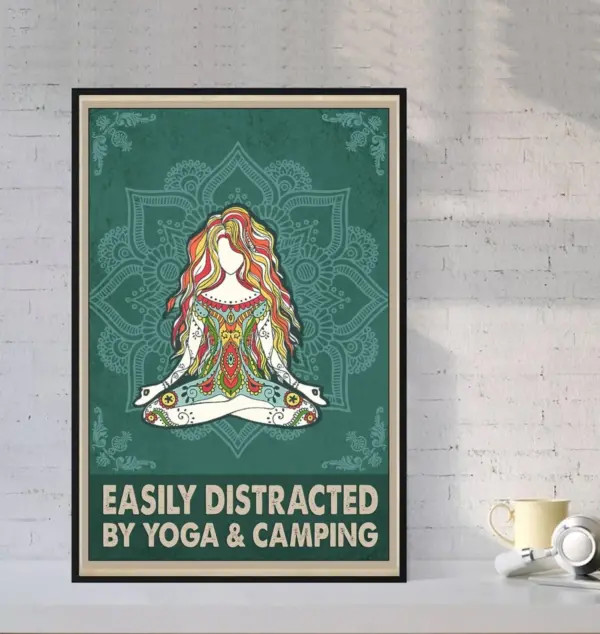 Easily Distracted By Yoga And Camping Poster Campers Gift Camping Lover Poster Hippie Yoga Girl Poster Gif For Yoga Lover Hippie Art
