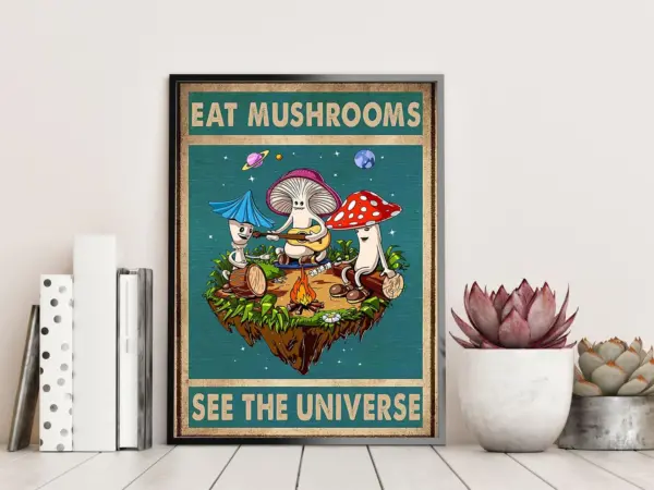 Eat Mushrooms See The Universe Poster Trippy Poster Hippie Wall Decor Hippie Art Print Mushroom Poster Psychedelic Trippy Poster