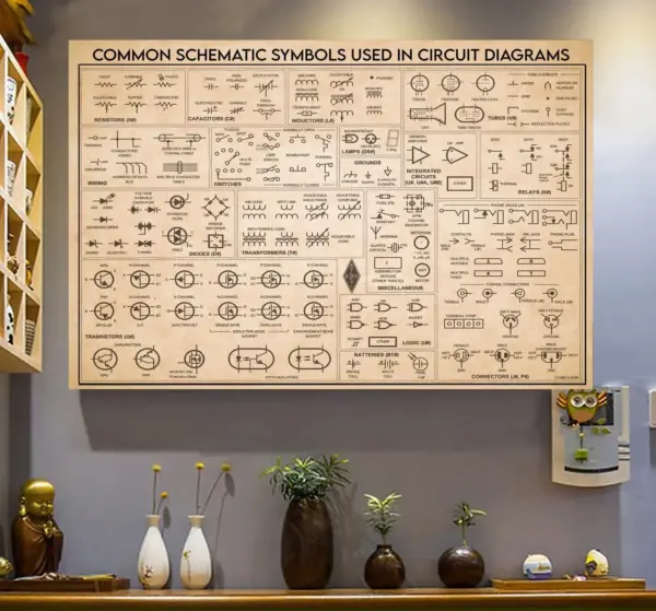Electrician Common Schematic Symbols Used In Circuit Diagrams Horizontal Print Poster