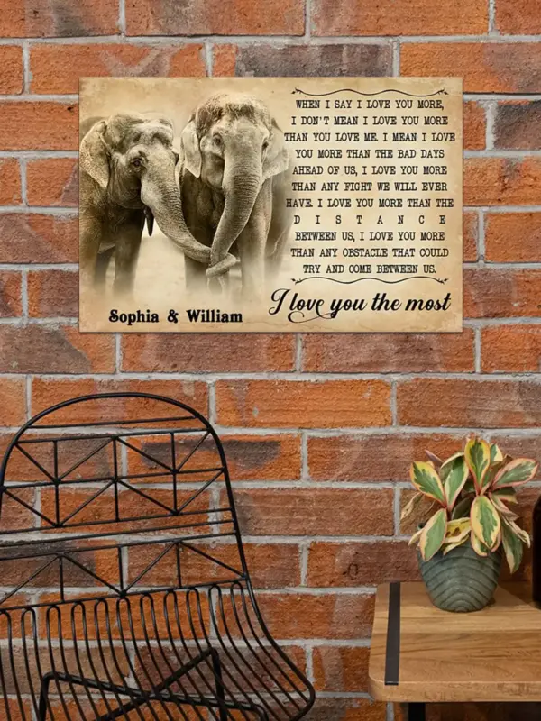 Elephant I Love You The Most Custom Name Poster When I Say I Love You Work Love Elephant Couple Elephant Valentine Gift Family Poster