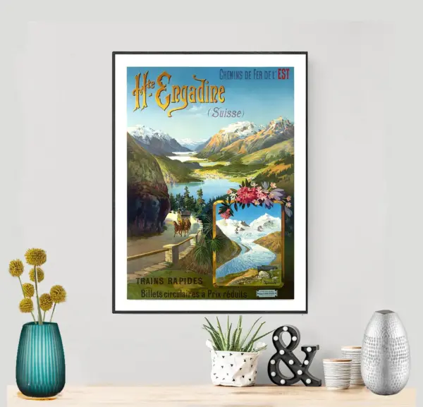 Engadine Suisse Switzerland Schweiz Vintage Travel Poster Poster Paper Sticker Or Canvas Print Gift Idea