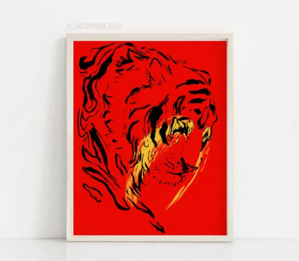 Evening Minimalist Art Tiger Art Print Animal Decor Wall Art Red Ink Tiger Rustic Decor Barnhouse Kids Room Minimalist Simple Modern Art