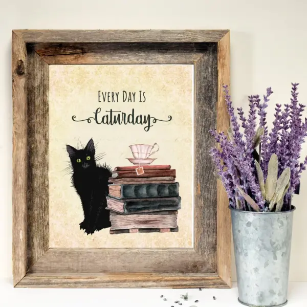Every Day Is Caturday Quote Black Cat Watercolor Art Print Purrfect Gift For Cat Lovers Animal Wall Poster