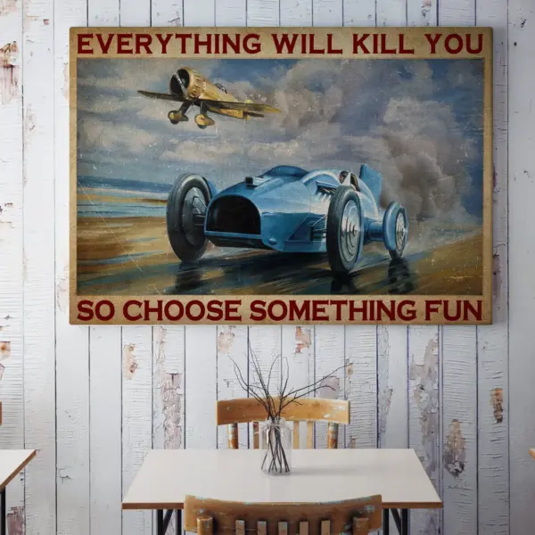 Everything Will Kill You So Choose Something Fun Poster Canvas Airplane Racing Poster Car Racing Wall Art Gift For Car Racer