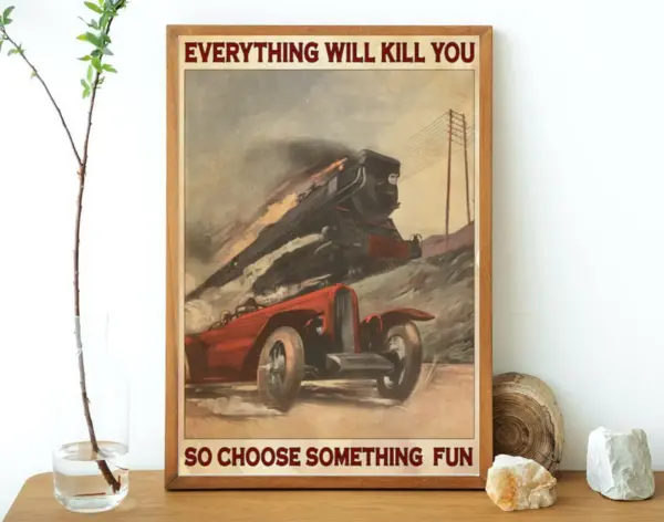 Everything Will Kill You So Choose Something Fun Poster Car Racing Train Vertical Poster No Framed