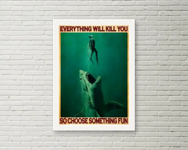 Everything Will Kill You So Choose Something Fun Poster Ocean Animals Wall Decor Shark Poster Sea Life Art Home Decor Sign For Home