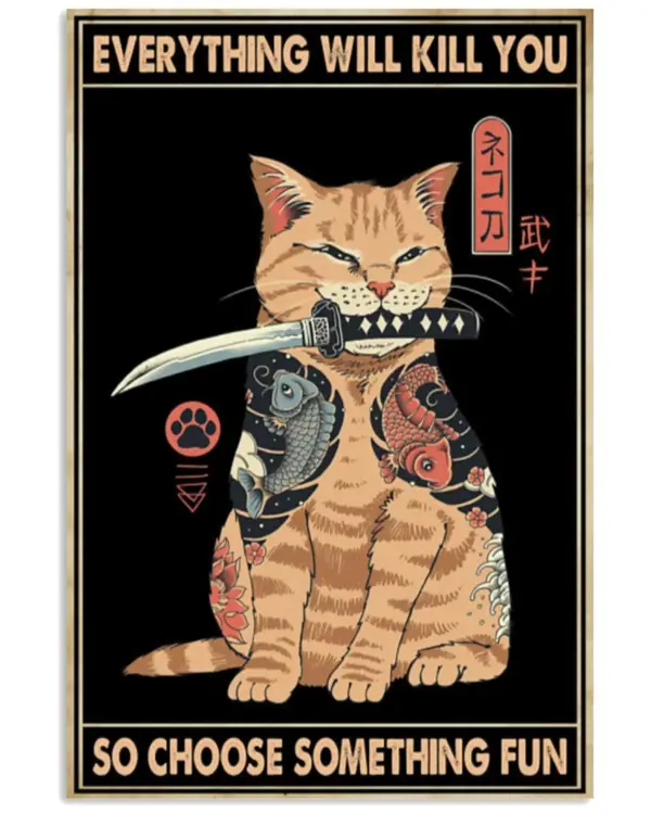Everything Will Kill You So Choose Something Fun Vertical Poster Funny Cat Baking Art Cat Lover Gift