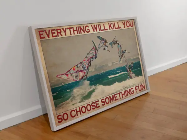 Everything Will Kill You So Choose Something Fun Windsurfing Motivational Poster Surfer Art Print Ocean Lover Canvas Art For Home Decor