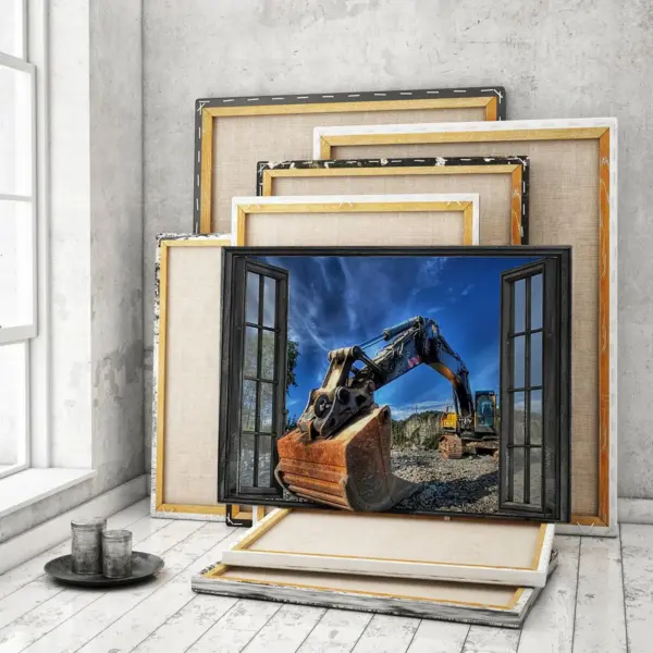 Excavator By The Window Poster Transportation Decor Construction Poster Digger Wall Art Truck Prints Excavator Driver Gift