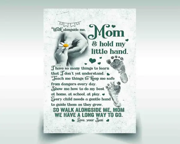Family Walk Alongside Mom Canvas Poster - Heartfelt Parent-Child Keepsake