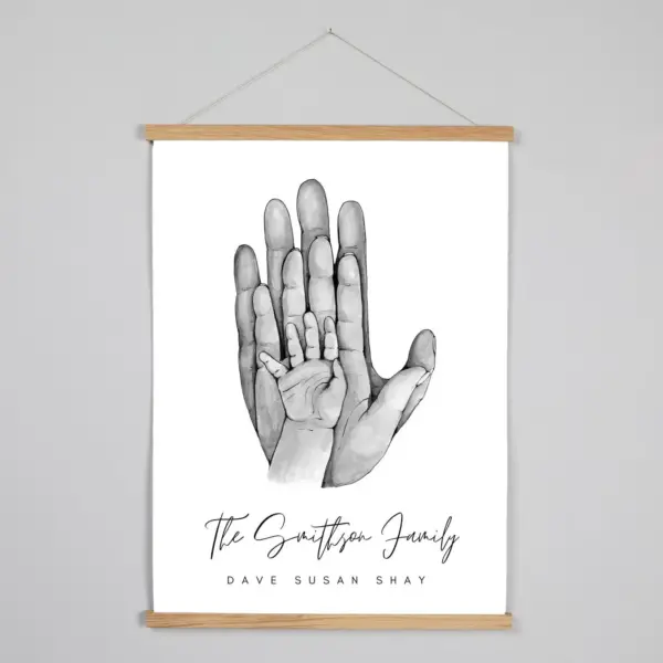 Family Hands Print With Poster Hanger Handprint Kids Personalised Print Family Gift For Fathers Day Gift For Dad