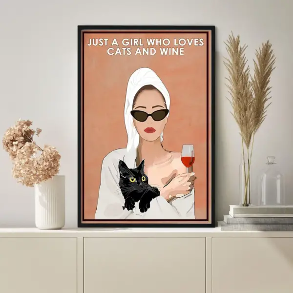 Fancy Girl With Wine Glass Poster Just A Girl Who Loves Cats And Wine Poster Animal Art Cat Lover Gift Cute Cat Wall Art No Frame