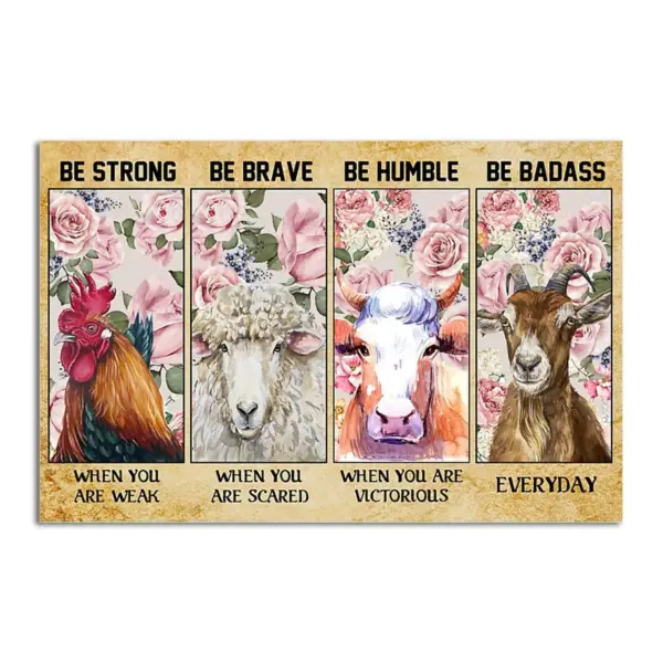Farm Animal Poster Be Strong Brave Humble Horizontal Poster Animal Poster Chicken Sheep Cow Poster Farm Poster
