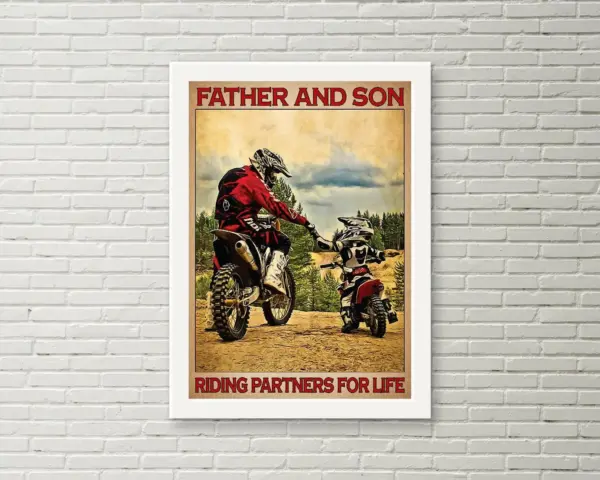 Father And Son Riding Partners For Life Poster Motorcycle Racing Poster Motorcycle Race Sport Art Gift For Dad Son Motorcycle Lover Gift