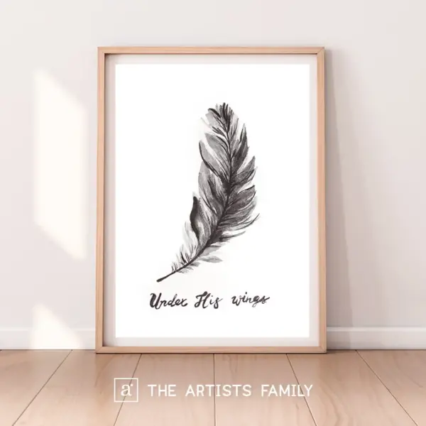 Feather Downloadable Prints Water Color Scripture Wall Art Painting Posters Minimal Boho Decor Printable Under His Wings Black And White