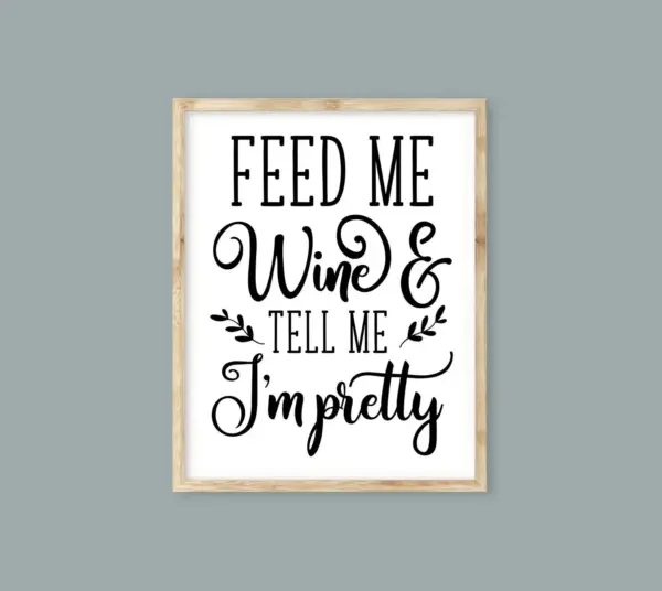 Feed Me Wine Fun Wall Hanging Unframed Fun Kitchen Wine Quote