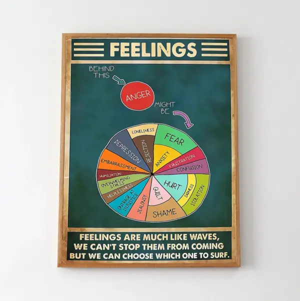 Feelings Are Much Like Waves Poster Wheel Of Feelings Poster Mental Health Poster Therapist Wall Decor Mental Health Awareness Poster