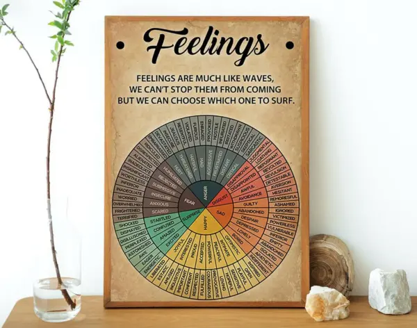 Feelings Poster Emotions Poster Mental Health Poster Wheel Of Emotions Poster Feeling Wheel Vintage Style Vertical Poster No Framed