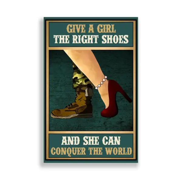 Female Veteran Poster Give A Girl The Right Shoes Military Home Decoration Feminist Wall Art Girl Power Red High Heels Gift For Her