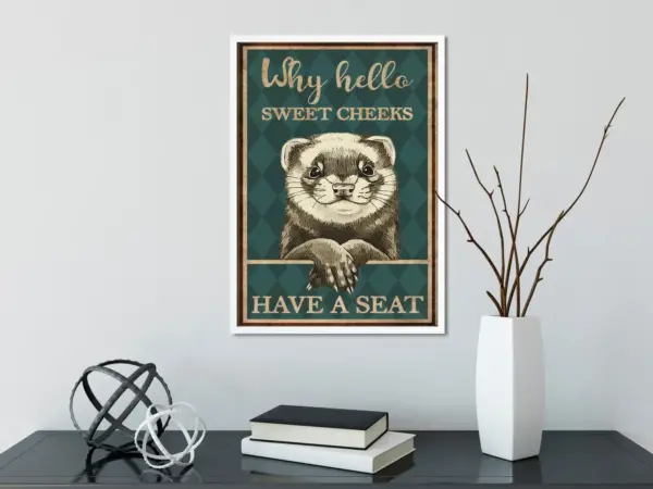 Ferret Why Hello Sweet Cheeks Poster Have A Seat Ferret Poster Bathroom Decor Funny Canvas Wall Art Home Decor