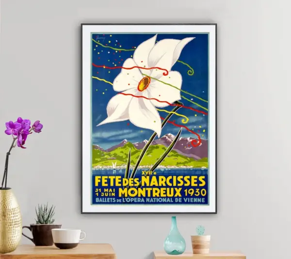 Fete Des Narcisses Montreux 31 Mai 1 Juin 1930 Vintage Travel Poster Poster Paper Sticker Or Canvas Print Gift Idea