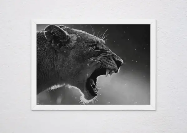 Fierce Roaring Lioness Print Black And White Lion Roar Bosses Office Decor Safari Wildlife Framed Poster Wild Animals Living Room Decor