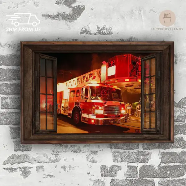 Fire Engine Window View Poster Firefighter Firefighting Gifts Wall Art Print Home Living Decor Poster