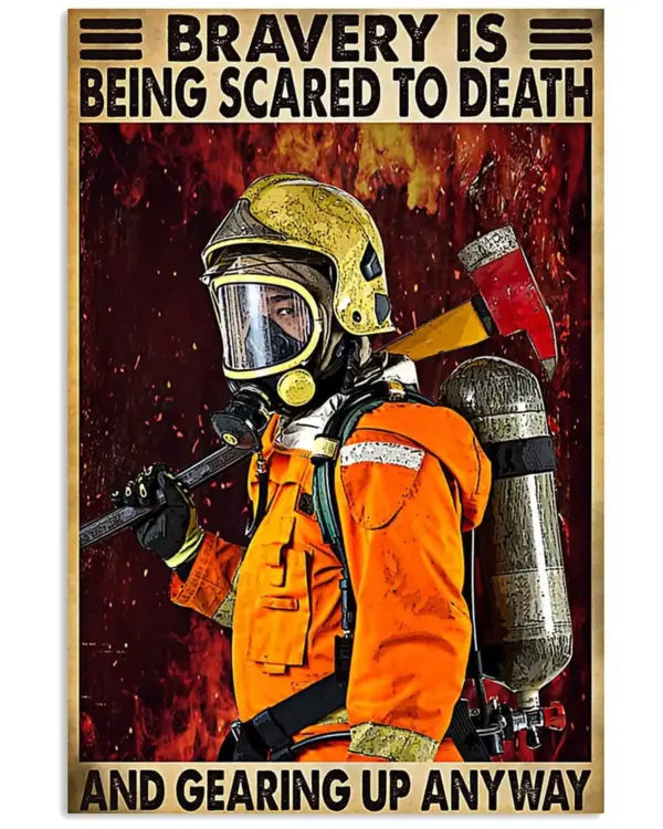Firefighter Bravery Is Being Scared To Death Canvas Poster Wall Art Birthday Christmas Housewarming Gift Ready To Hang Home Decor