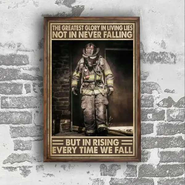 Firefighter Firefighting Poster The Greatest Glory In Living Lies Not In Never Falling Poster Home Living Decor Poster