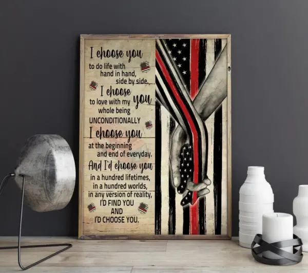 Celebrate firefighter love with this heartwarming US flag-inspired poster, capturing the bond between partners who choose life together side by side.