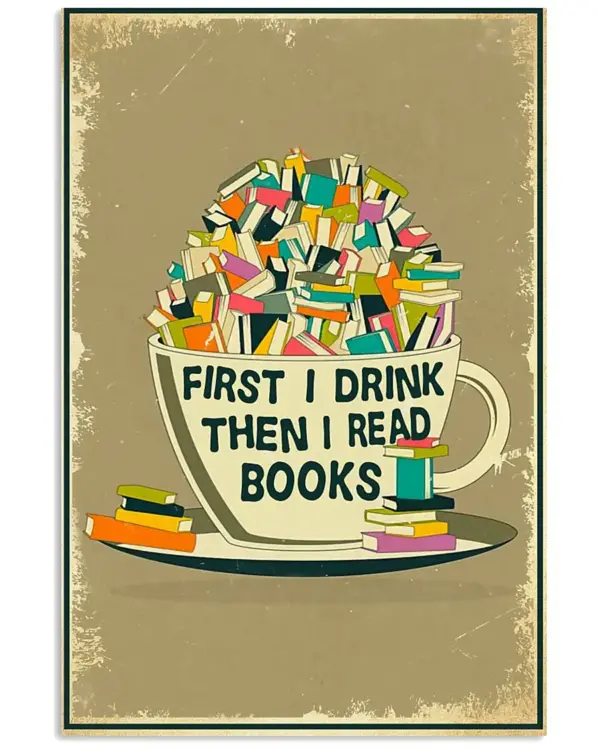 First I Drink Then I Read Books Wall Art Cool Poster Home Decor No Frame
