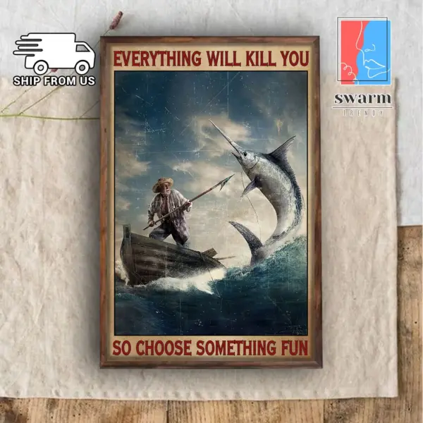 Funny Fishing Poster - "Everything Will Kill You" Home Decor