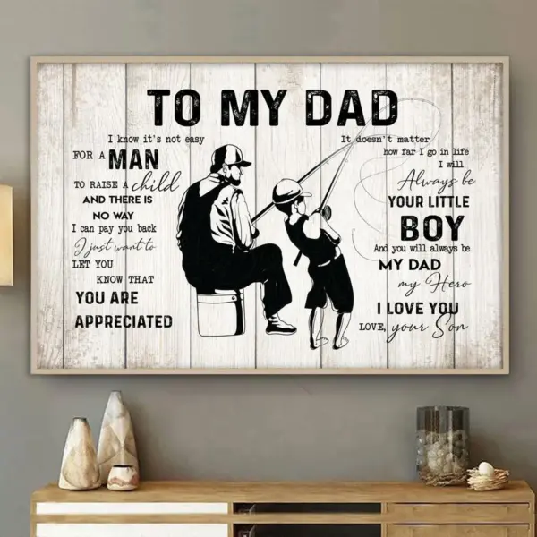 Fishing Gift To My Dad From Son Fishing Lover Poster Birthday Gift For Dad Wall Art