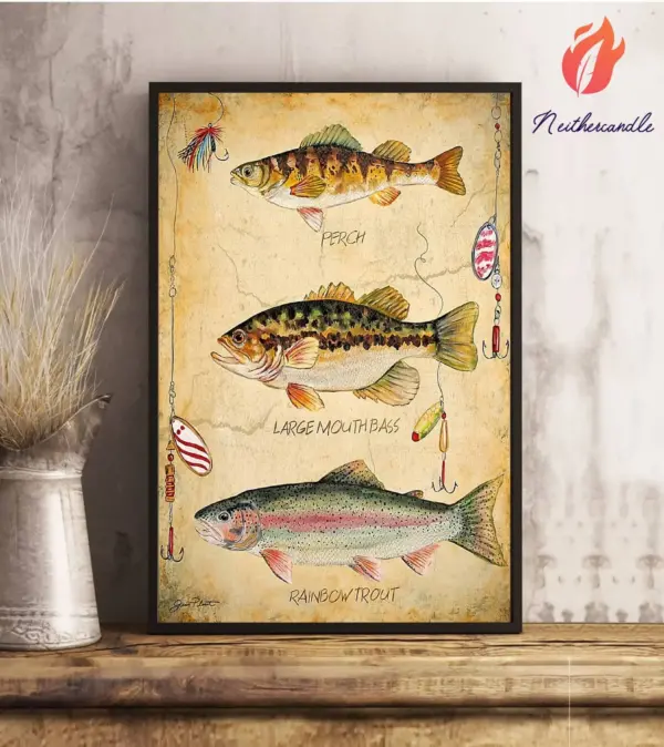 Fishing Poster Fishing Art Perch Largemouth Bass Rainbow Trout Wall Art Home Decor Poster Print