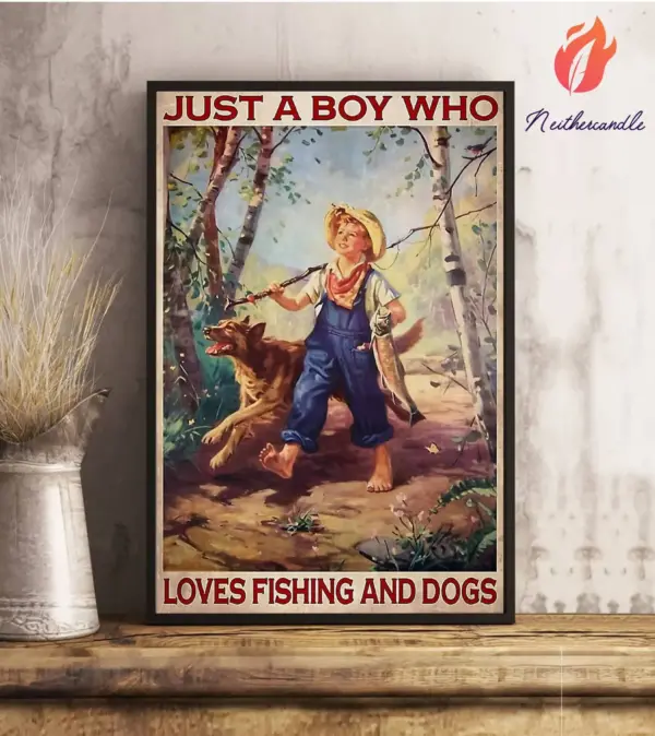 Fishing Poster Fishing Just A Boy Who Loves Fishing And Dogs Wall Art Home Decor Poster Print