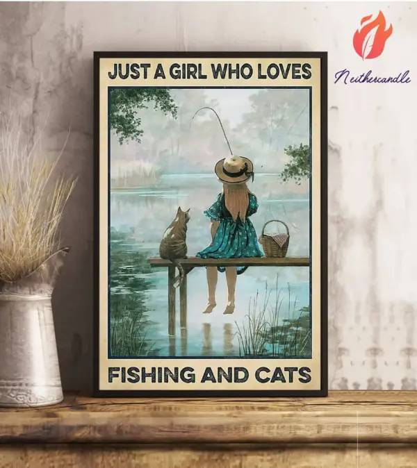 Fishing Poster Fishing Just A Girl Who Loves Fishing And Cats Wall Art Home Decor Poster Print