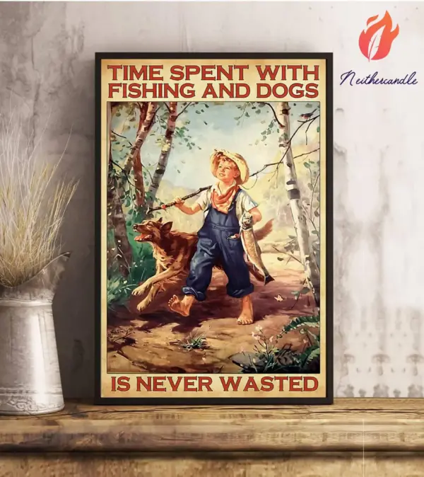 Fishing Poster Time Spent With Fishing And Dogs Is Never Wasted Wall Art Home Decor Poster Print