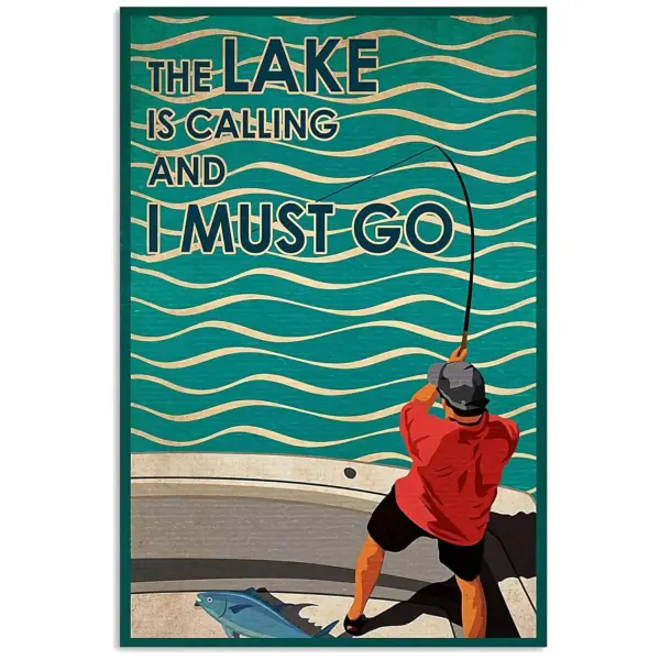 Decorate your home with this vintage-style fishing lake poster, available as a high-quality canvas print or poster. Perfect Father's Day gift!