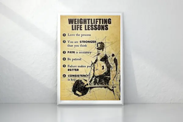 Fitness Weightlifting Life Lessons Poster Framed Matte Canvas